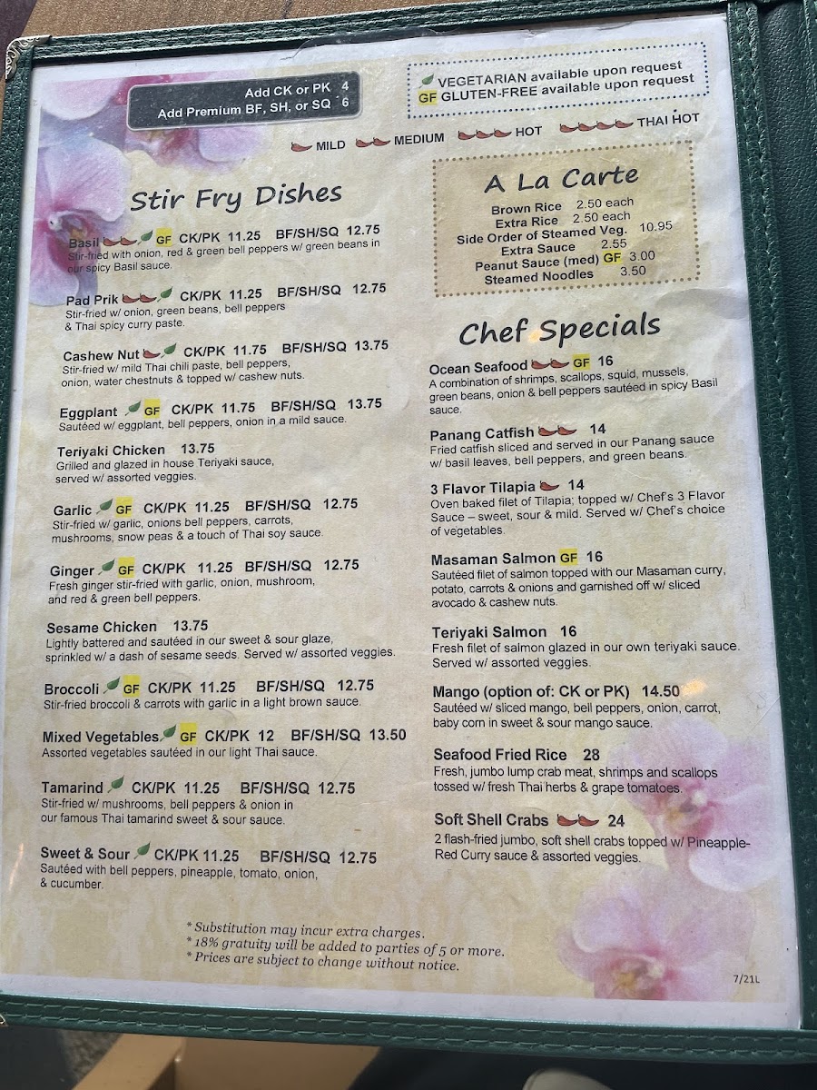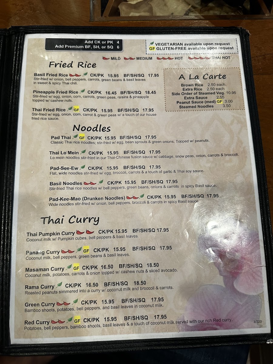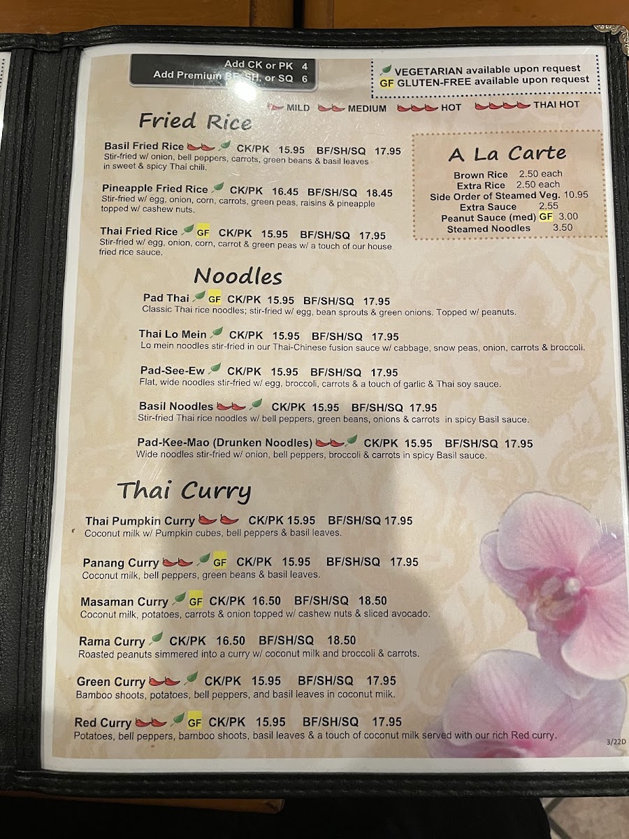 Highlighting expertly crafted dishes, their Basil Fried Rice and Drunken Noodles are sure to tantalize your taste buds, infused with aromatic herbs and spices. The Pad Thai stands out as a fantastic classic, featuring the perfect blend of textures and flavors.